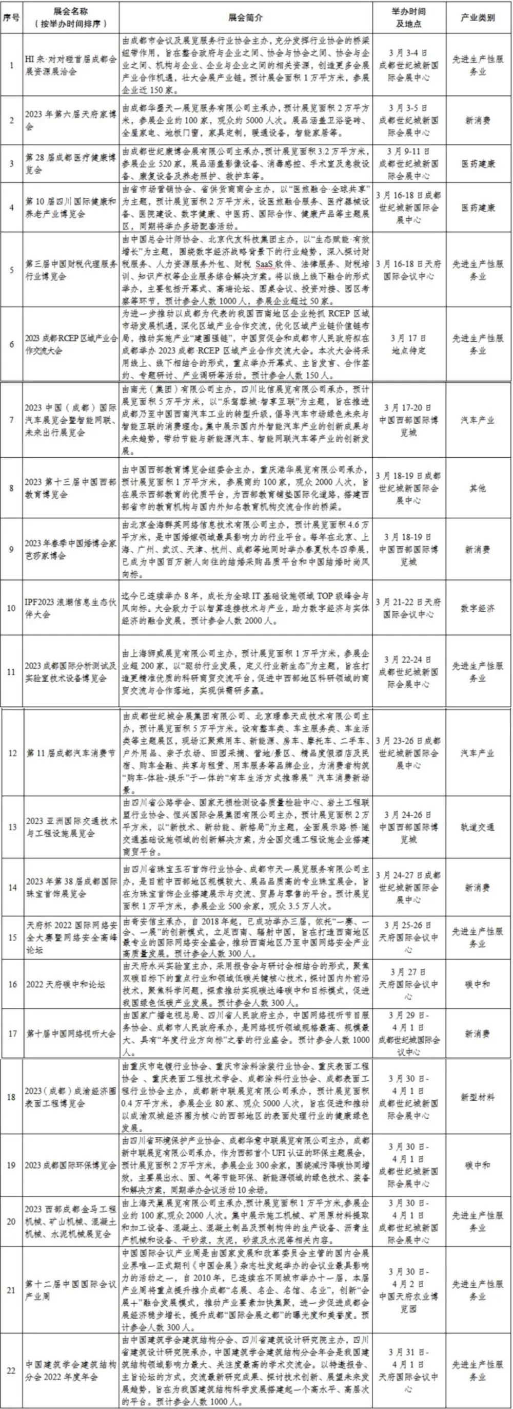 成都展覽設(shè)計(jì)公司了解到3月份成都擬舉辦展3月成都擬舉辦重要會(huì)展活動(dòng)共22個(gè)會(huì)展活動(dòng)共22個(gè)
